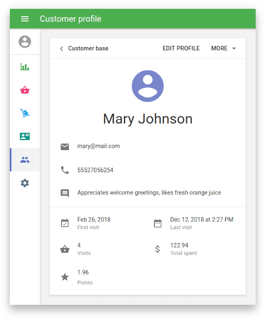 Manage your customers, find the customers with the most visits or most purchases, etc